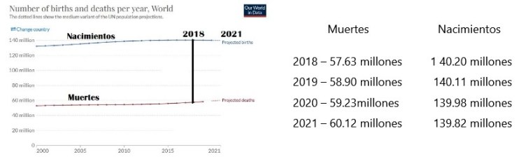 125,260,000 millones de nacimientos y 121,700,000 millones de muertes o, para ser más preciso, 4,340,000 personas como población mundial total. ¿Te queda claro?
