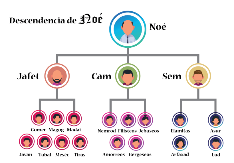 De los hijos de Noé provienen todas las naciones que se dispersaron por toda la tierra. Sin embargo, para efectos del presente, solo se mencionarán los descendientes más relevantes al tema actual. Entonces, los hijos de Cam fueron Cus, Mizraim, Fut y Canaán. De Cus proviene Nimrod, el que estableció Babilonia y de Mizraim los filisteos. Los jebuseos, hititas, amorreos, fenicios, asirios, y muchos otros más, eran descendientes de Canaán. Todos estos pueblos adoraban a dioses paganos, de los cuales Baal y Aserah, también conocida como Astoreth, Astarte, Ishtar, e Isis, eran los principales. Los cultos a estas deidades consistían en ritos sexuales y sacrificios humanos los cuales incluían niños.