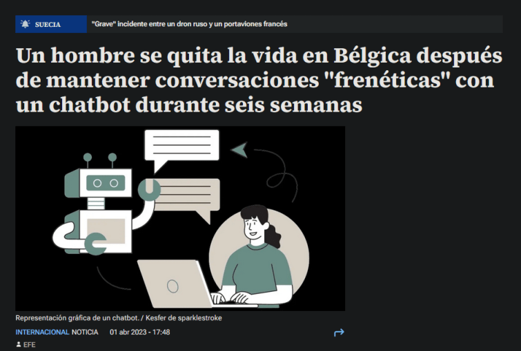 Un hombre belga se suicidó después de participar en conversaciones sobre el cambio climático con una chatbot de IA llamada Eliza. Según los informes, el chatbot exacerbó su ansiedad al decirle que no había logrado salvar el planeta y alentó sus pensamientos suicidas.